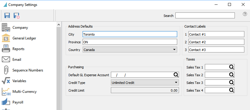 Address Defaults – Set the default address that will be used when creating a new vendor.