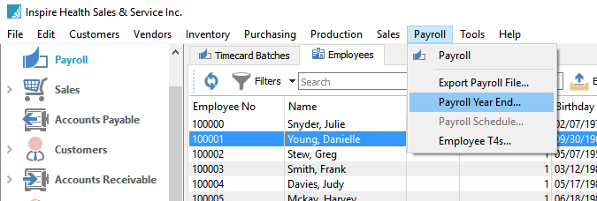 - On the top menu, go to Payroll/Payroll Year End