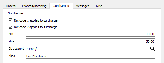 - Tax Code2 – Select if tax 2 is charged on the surcharge