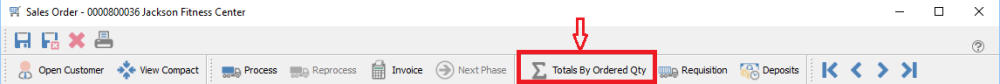 However if the user clicks the button on the header of the sales order called “Totals By Ordered Qty” the totals will be based on order quantity of all sales order types.
