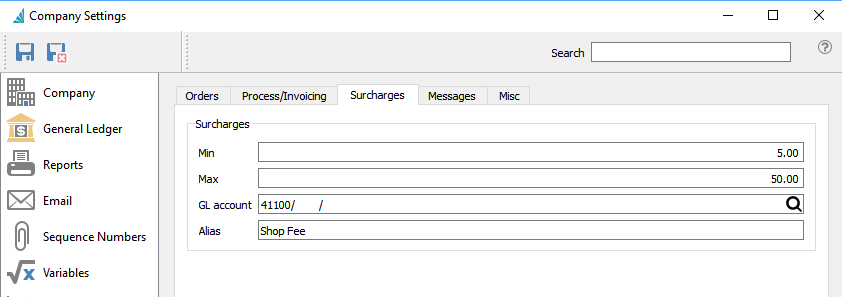 Surcharges can be set to automatically be added to the footer of an order, much like a tax. The surcharge amount or % is set in editing of Product Codes. This can be used for ‘Fuel Surcharge’ or ‘Shop Supplies’ etc.