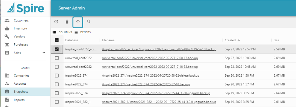 See also Spire Server Admin – > Snapshots