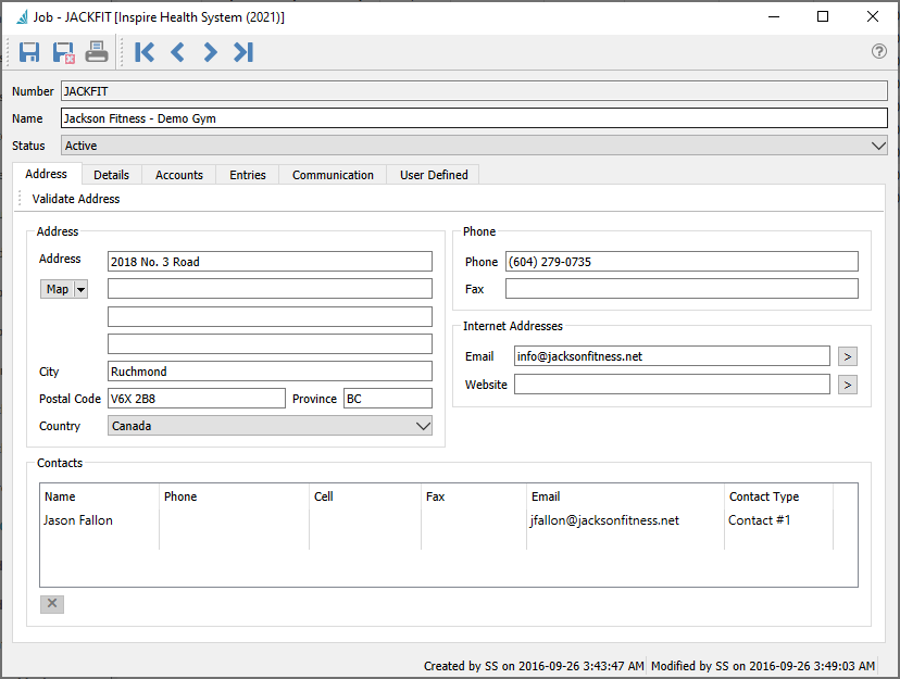 The Address tab simply stores the billing address of the customer for whom the job is being done.