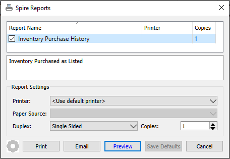 The History tab has a list of all purchase orders for this item that have been closed to purchase history. A filter can be set to list only those purchases you need to see, such as recent purchases or from a specific vendor. You can view a Purchase Order and see what was ordered, and also copy the PO to create a new one, or create a credit transaction to reverse some or all of the purchase and receipt.