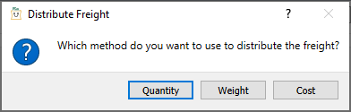 Landed Freight – The estimated freight that gets charged by a third-party vendor that gets included in the cost of the items received. The amount is calculated from the sum of all freight amounts on item details. This field is only editable if at least one item of the Issued PO has received quantity entered. When you enter the amount to the landed freight field, you get prompted for how the freight should be distributed to each PO line. The choices are Quantity, Weight or Cost. You could then edit each line of the PO after this distribution, if required. This total amount will be posted to the Accrued Freight Charges account configured in Company Settings – Special Accounts when the PO Receipt is posted.