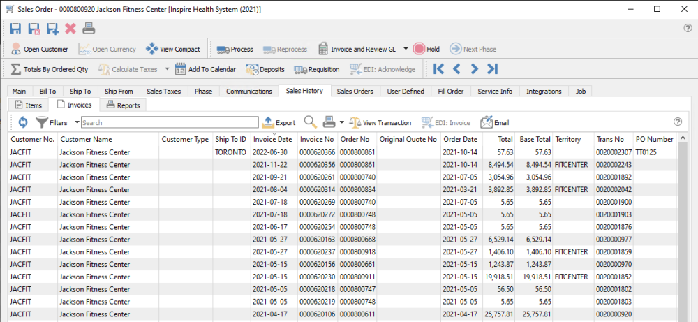 Sales History Invoices