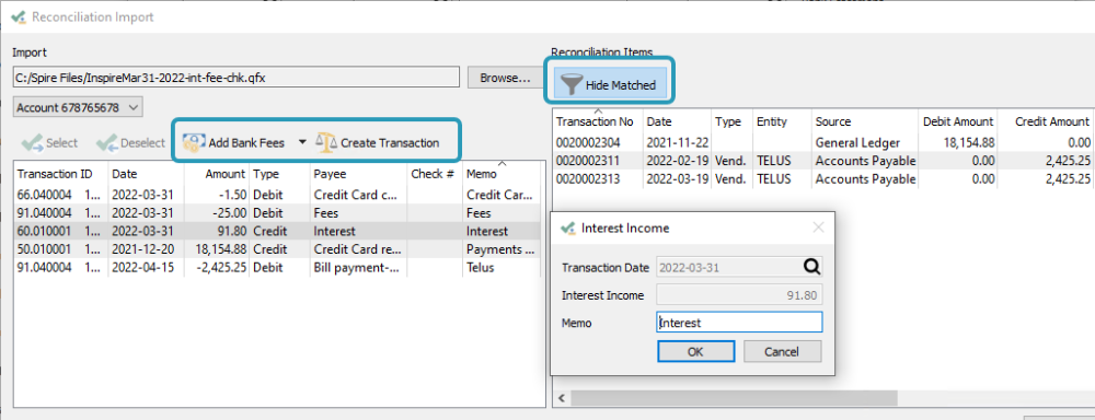 - Bank Reconciliation and Import support posting bank transactions on the fly, and matching and display improvements.
