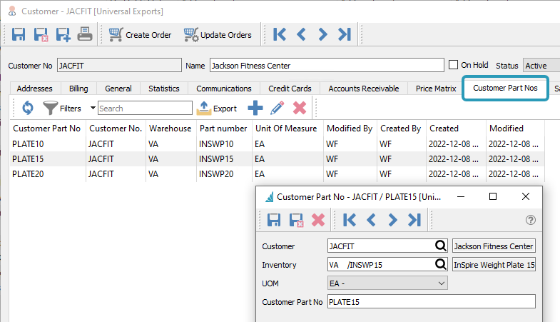 - Customer-specific part numbers for inventory items.