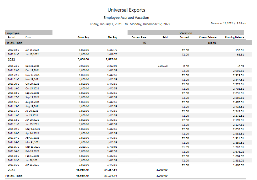 - New Employee Accrued Vacation report.