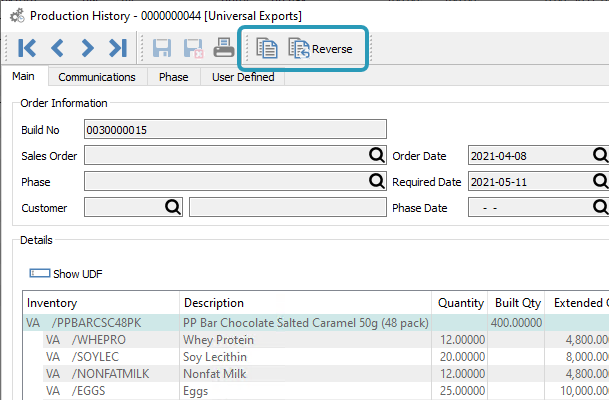 - Copy/Reverse Production Orders from Production History.