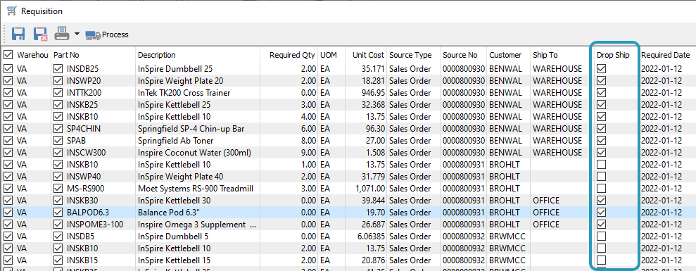 - Drop Ship in Requisitions from sales orders, for processing to purchase orders.