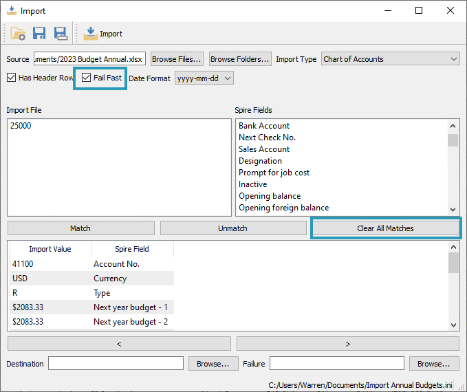- L’importation propose de nouvelles fonctions telles que Clear All Matches pour réinitialiser les correspondances et Fail Fast pour montrer immédiatement la première erreur lors d’une importation.
