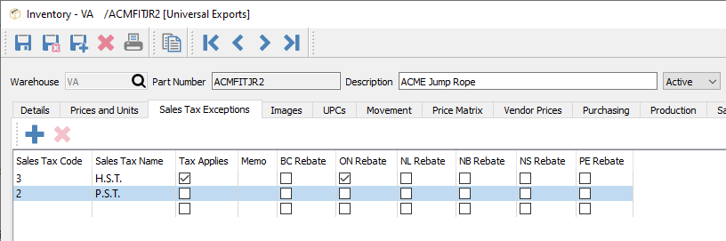 - Les articles d’inventaire ont désormais des exceptions de taxe de vente flexibles, attribuées soit à l’article soit au code de produit, pour déterminer la taxe de commande de vente.