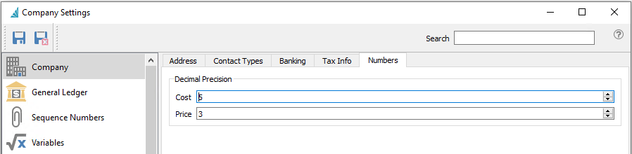Price – Precision to use when calculating prices on Sales and Purchase Orders.