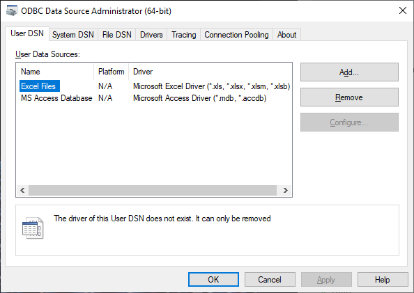 - Start the ODBC Data Source Administrator (64-bit)