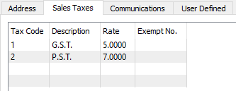 Sales Taxes – Define the default tax codes that will be used on Purchase Orders assigned to this warehouse, if purchases are taxable for here. These codes will be ignored on purchase orders if the vendor has the Billing option ‘Use billing address taxes on purchase order’ enabled.